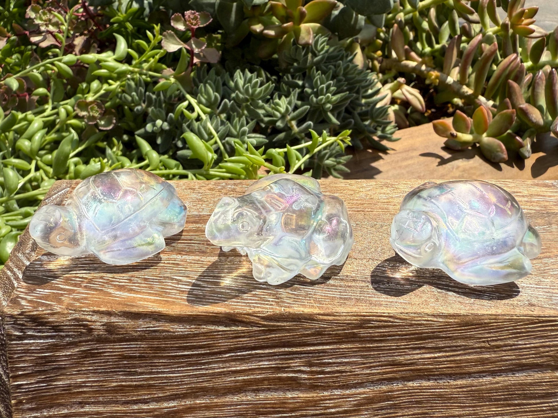 Angel Aura Glass Sea Turtle and Frog. This Listing is for ONE (1) Carving. Please choose which carving from the Drop Down Menu.Turtle: Weight : Approx. 21.6 g / 0.76 oz