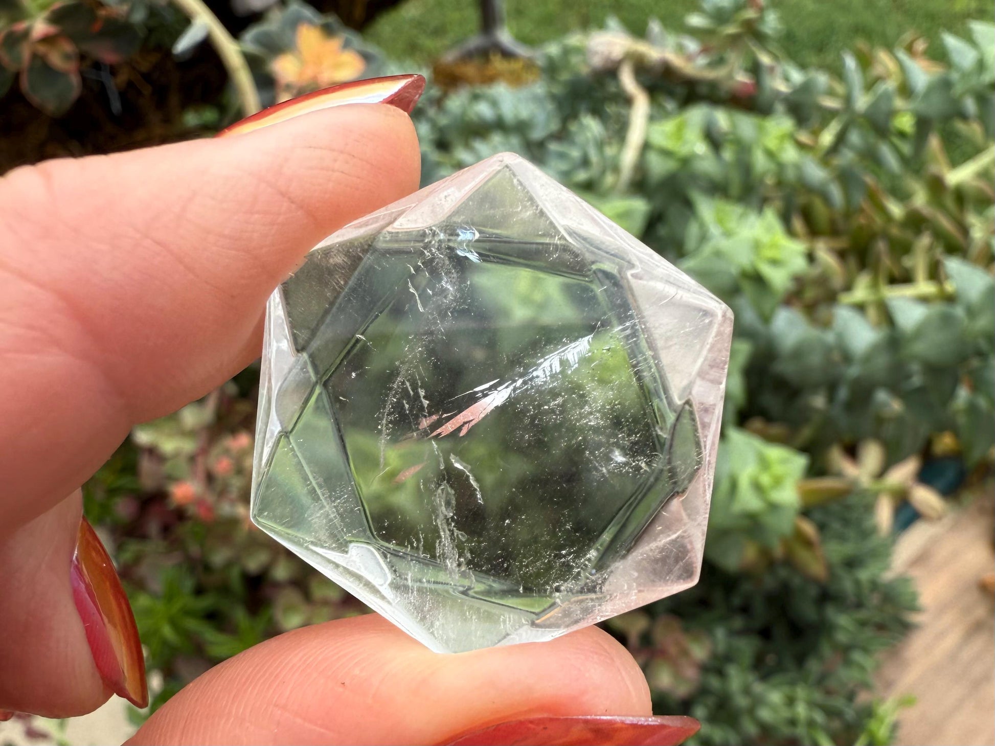 Size: Approx. 1.12"-1.22" Width** Please read measurements ** — You will receive one of the exact hexagons picturedDisclaimer: Crystals are natural products the earth and are not always “perfect”. Some may have surface marks, inclusions, vugs (cavities) and/or natural chips. Also, many carvings are hand carved and may not be as pristine as a machine carved piece.We do our best to ensure our crystals are photographed to show all angles, but occasionally, smaller natural marks may not show up correctly or be photographed up close. Please feel free to reach out before purchasing if you want to see anything in more detail.We will always disclose damage that is not natural i.e. a broken crystal. If a crystal arrives broken, please reach out and we can help with initiating a claim, when applicable.