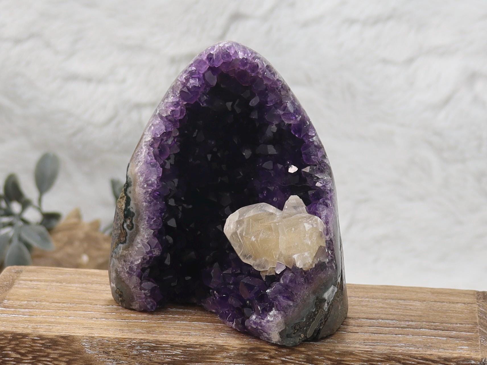 Beautiful Dark Purple Amethyst Cut Base with Calcite Crystal Cluster