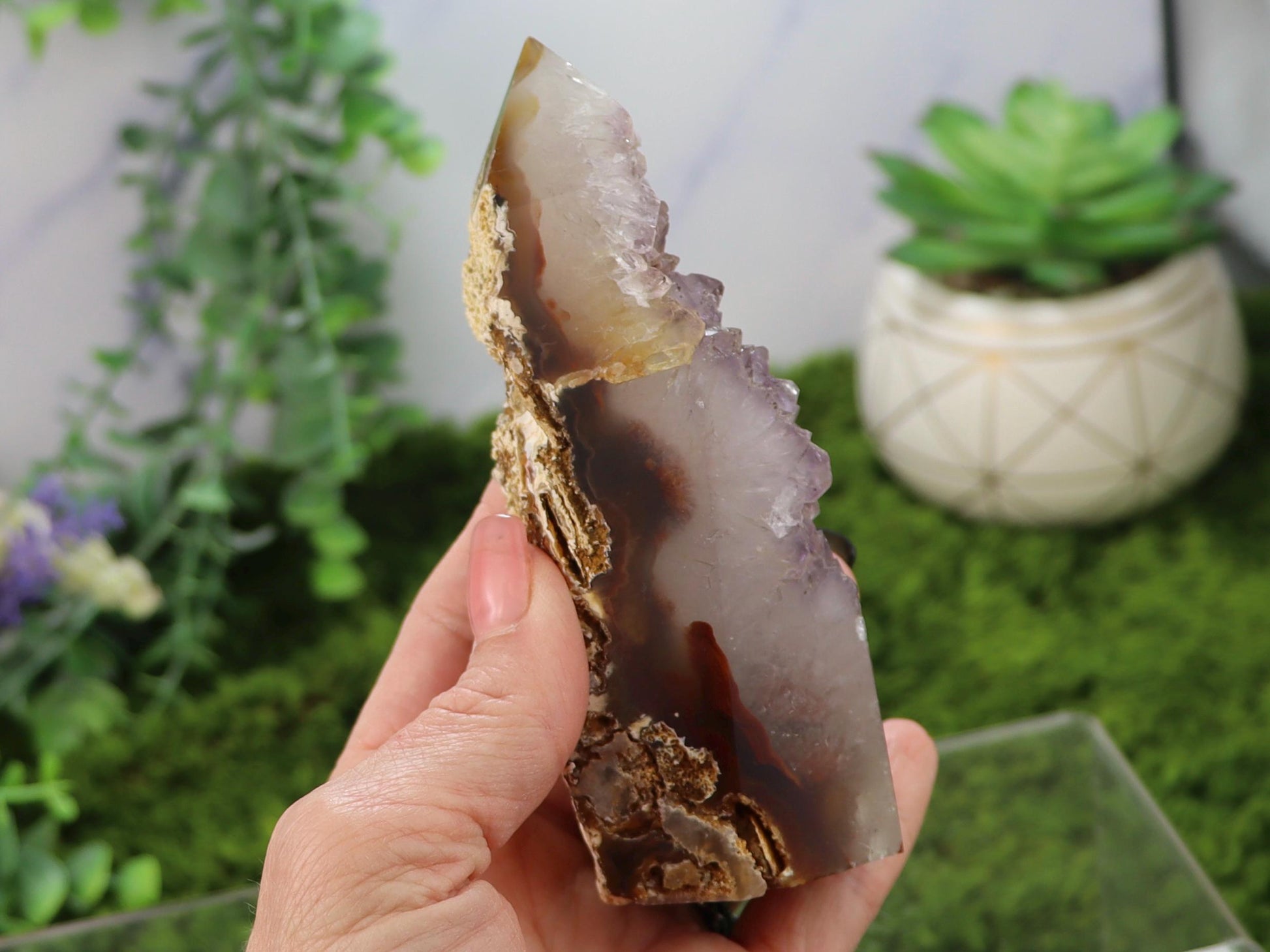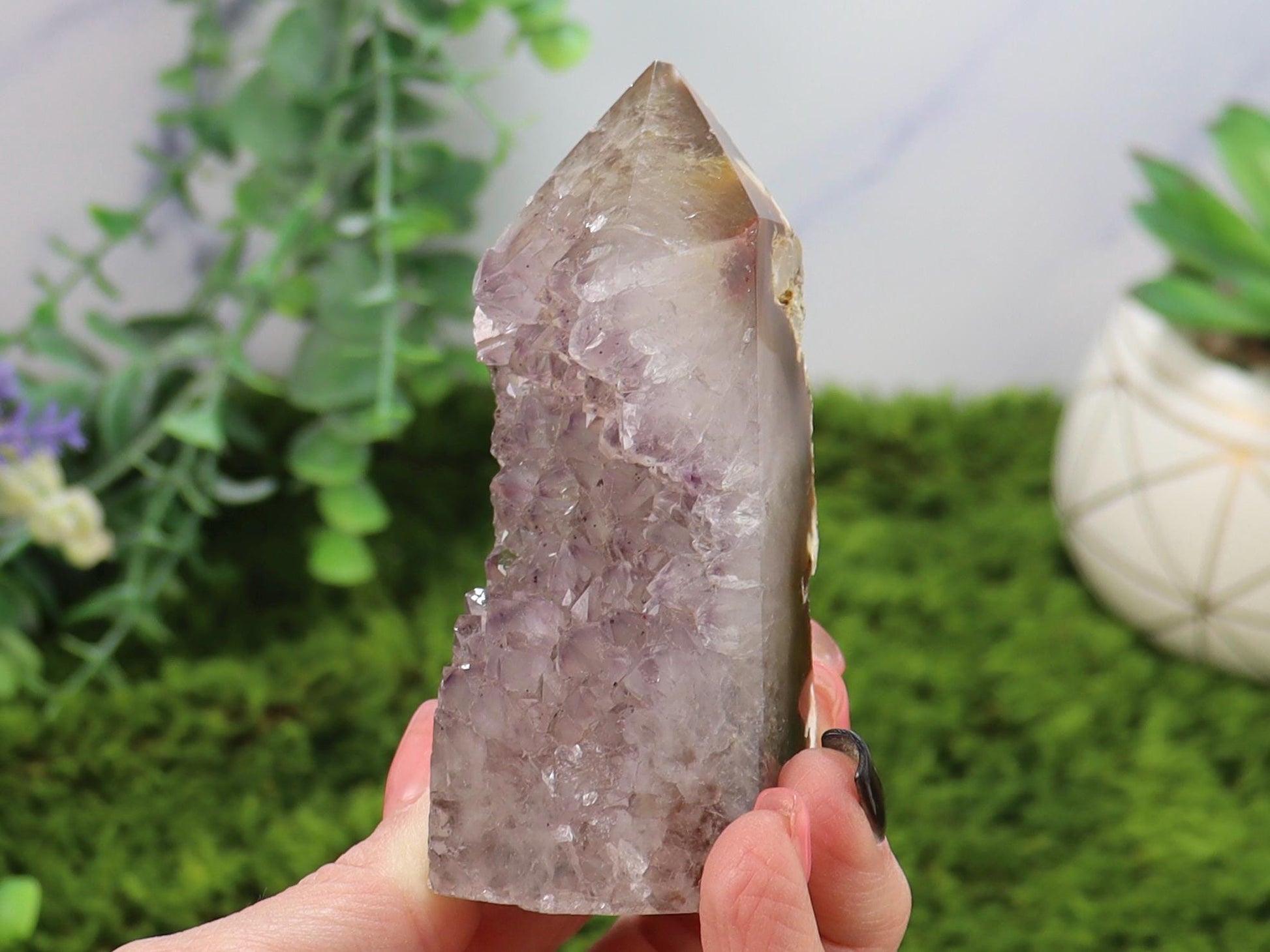 Measurements: 3.81" x 1.50" x 1.69"#2 - Weight: 302.9 g / 10.68 oz Measurements: 4.76" x 1.59" x 1.71"🔮 Metaphysical Properties • Amethyst: Calms the mind, enhances intuition, and supports spiritual growth • Agate: Provides grounding, balance, and protection • Geode formations: Amplify energy and connect with inner wisdom • Tower shape: Directs and channels energy upward for meditation, reiki, and manifestation**Please read measurements** <<You will receive the exact item pictured>>Due to the nature of this product some variations in appearance may occur due to lighting conditions during photography. With it being a product of the earth some naturally occurring imperfections such as cracks and blemishes may be present. I do my best to photograph these items so that you will see any of the above.