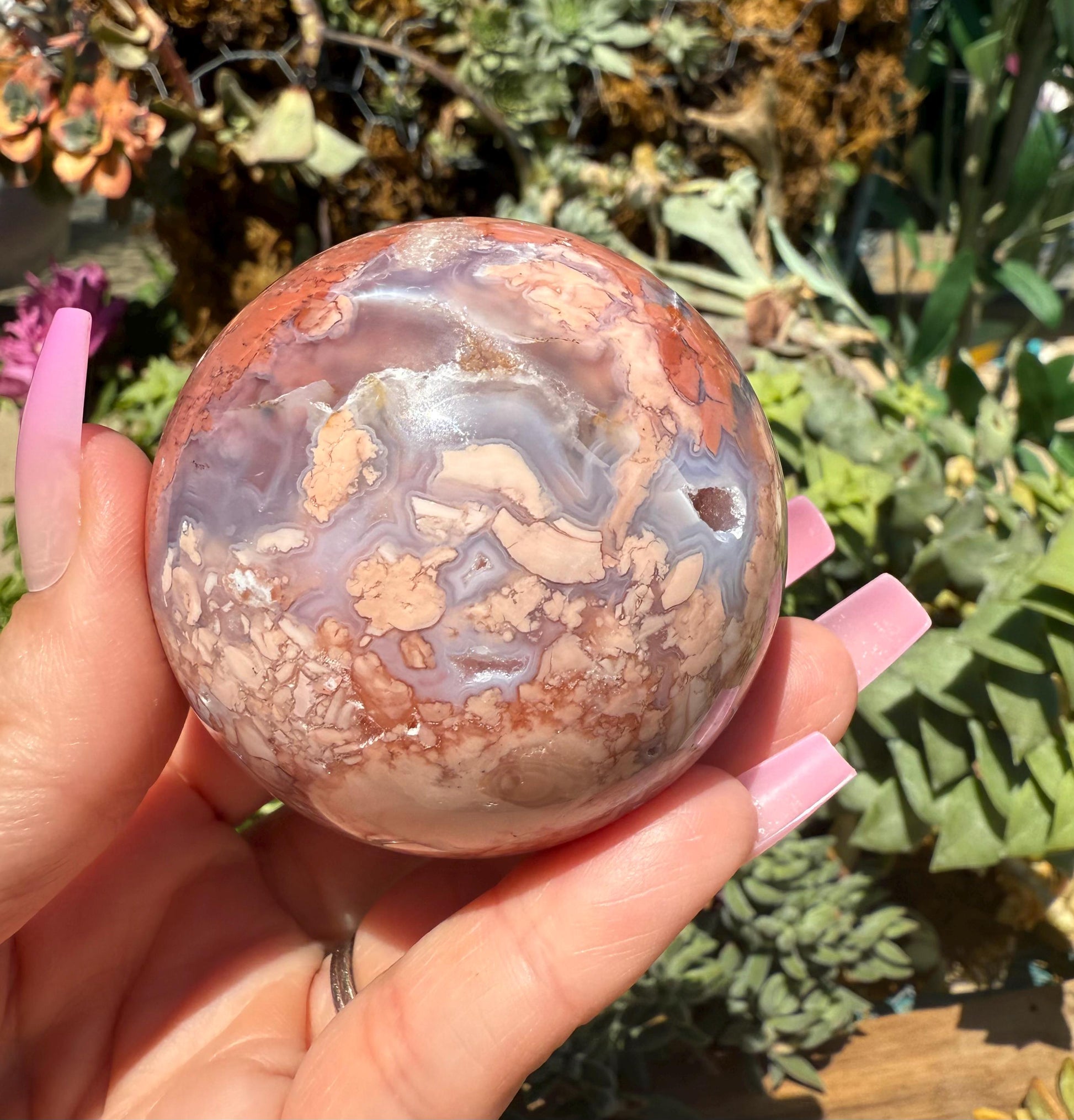 Druzy Cotton Candy Agate Sphere, Pink Agate Crystal Spheres