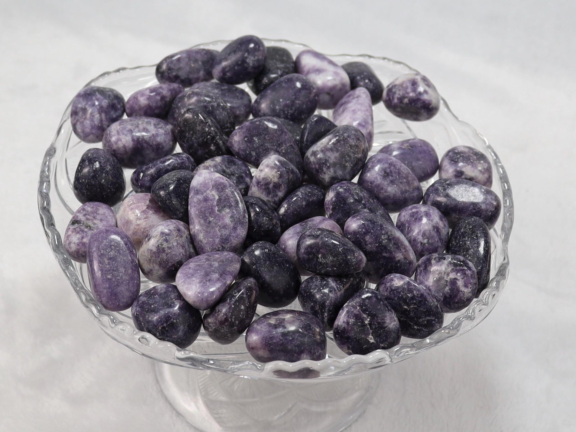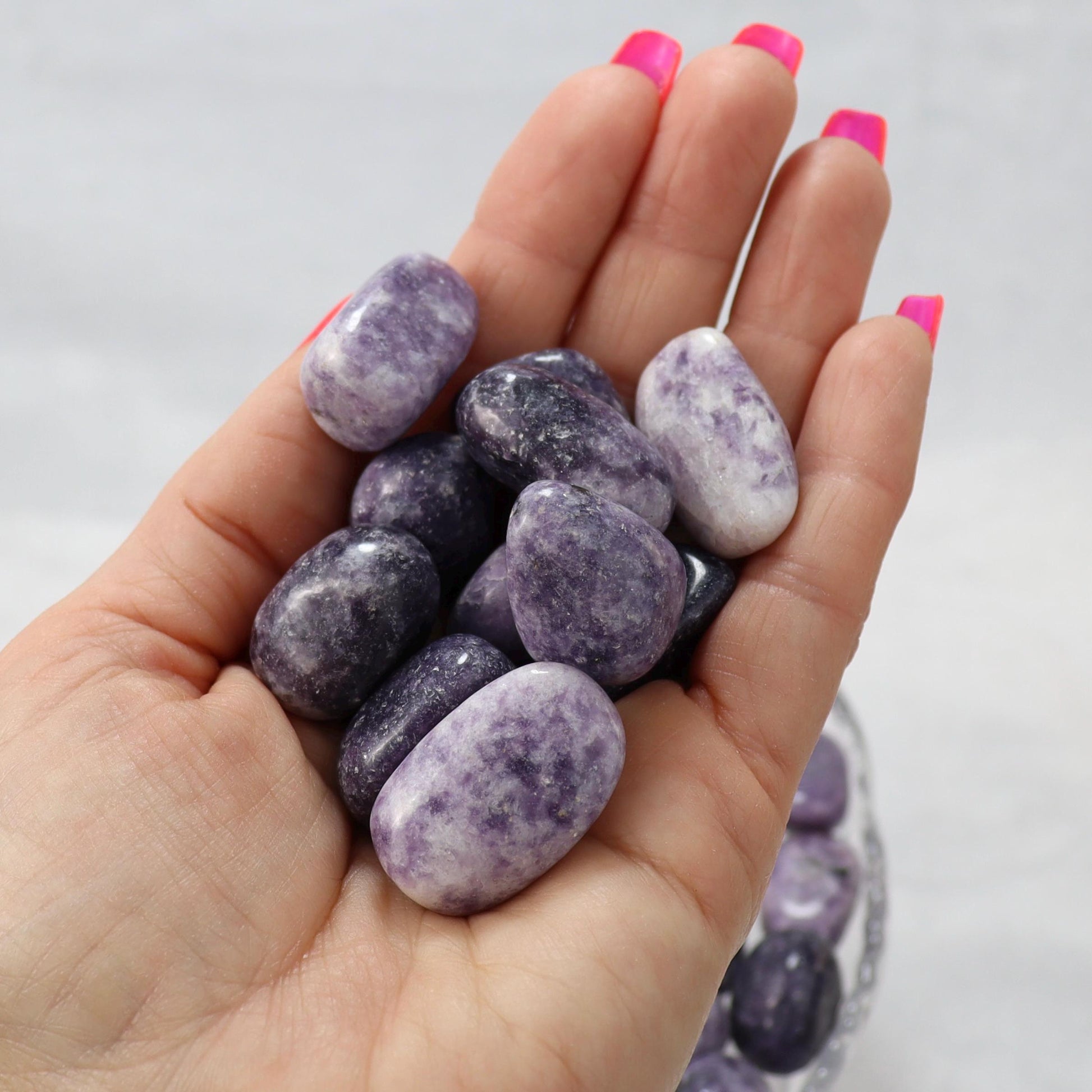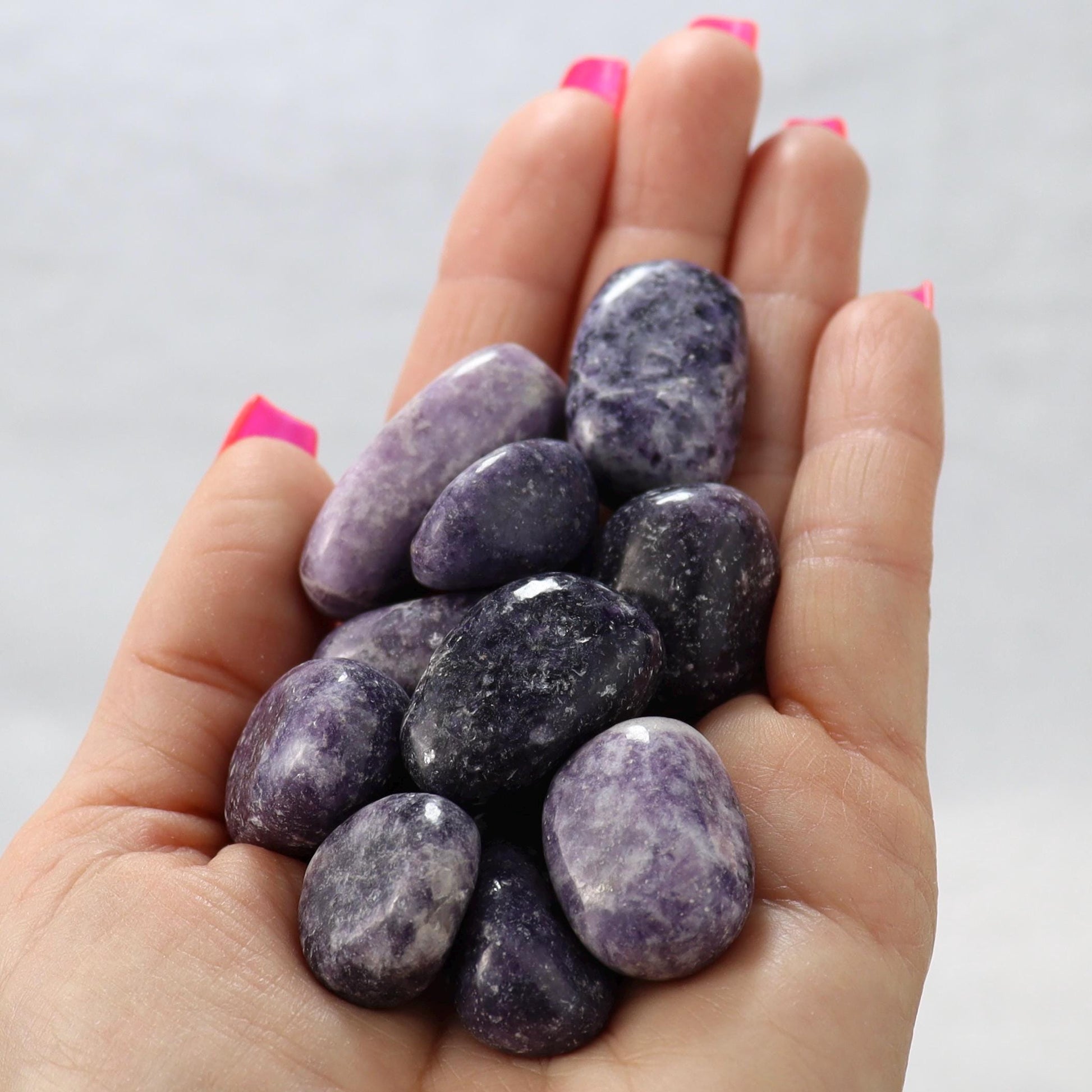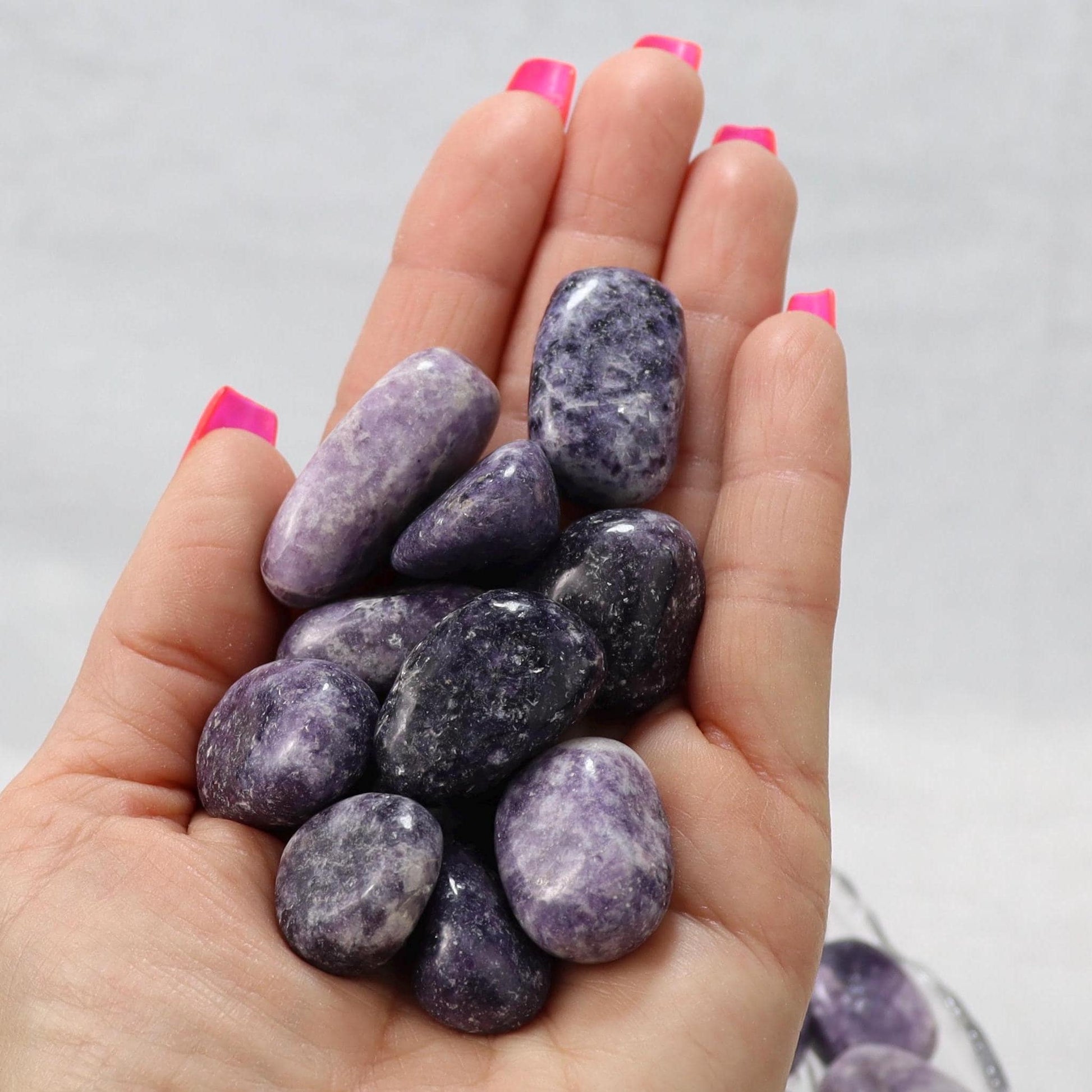 This listing is for 1 (ONE) 1 LB Bag of Lepidolite TumblesSize Range - 0.70" - 1.35"Due to the nature of this product some variations in appearance may occur due to lighting conditions during photography. With it being a product of the earth some naturally occurring imperfections such as cracks and blemishes may be present. I do my best to photograph these items so that you will see any of the above.