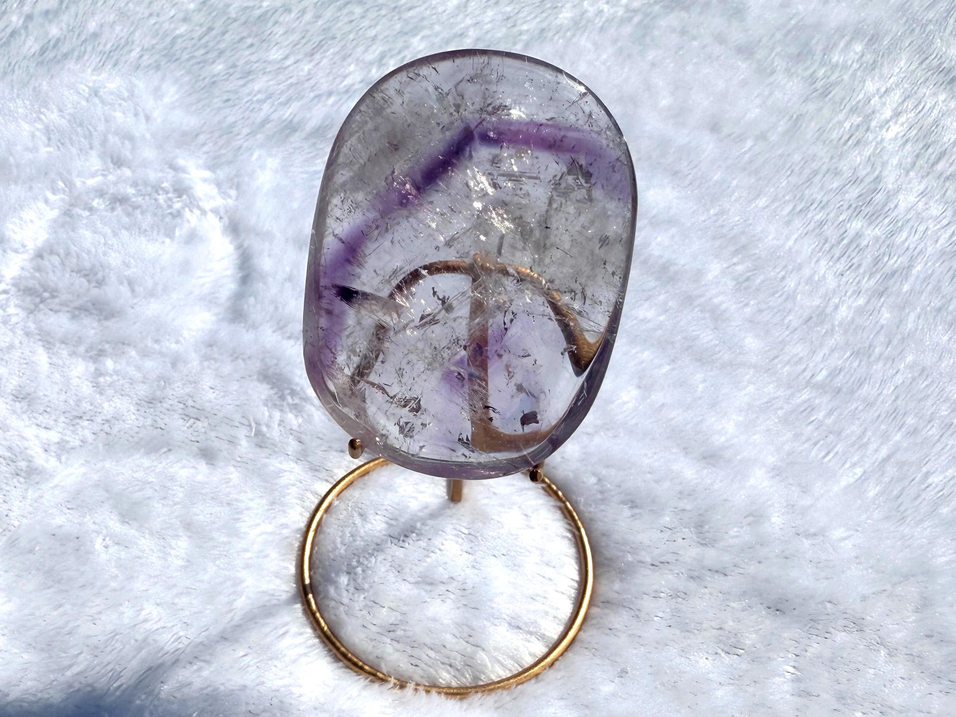 Bring mystical beauty and transformative energy into your space with this Phantom Amethyst palm stone, sourced from Brazil. Polished to a smooth finish, this piece reveals delicate “phantom” formations inside the stone — ghost-like layers that reflect stages of the crystal’s growth over time. Origin: BrazilWeight: 51.8 g/ 1.83 oz. (Crystal Only)