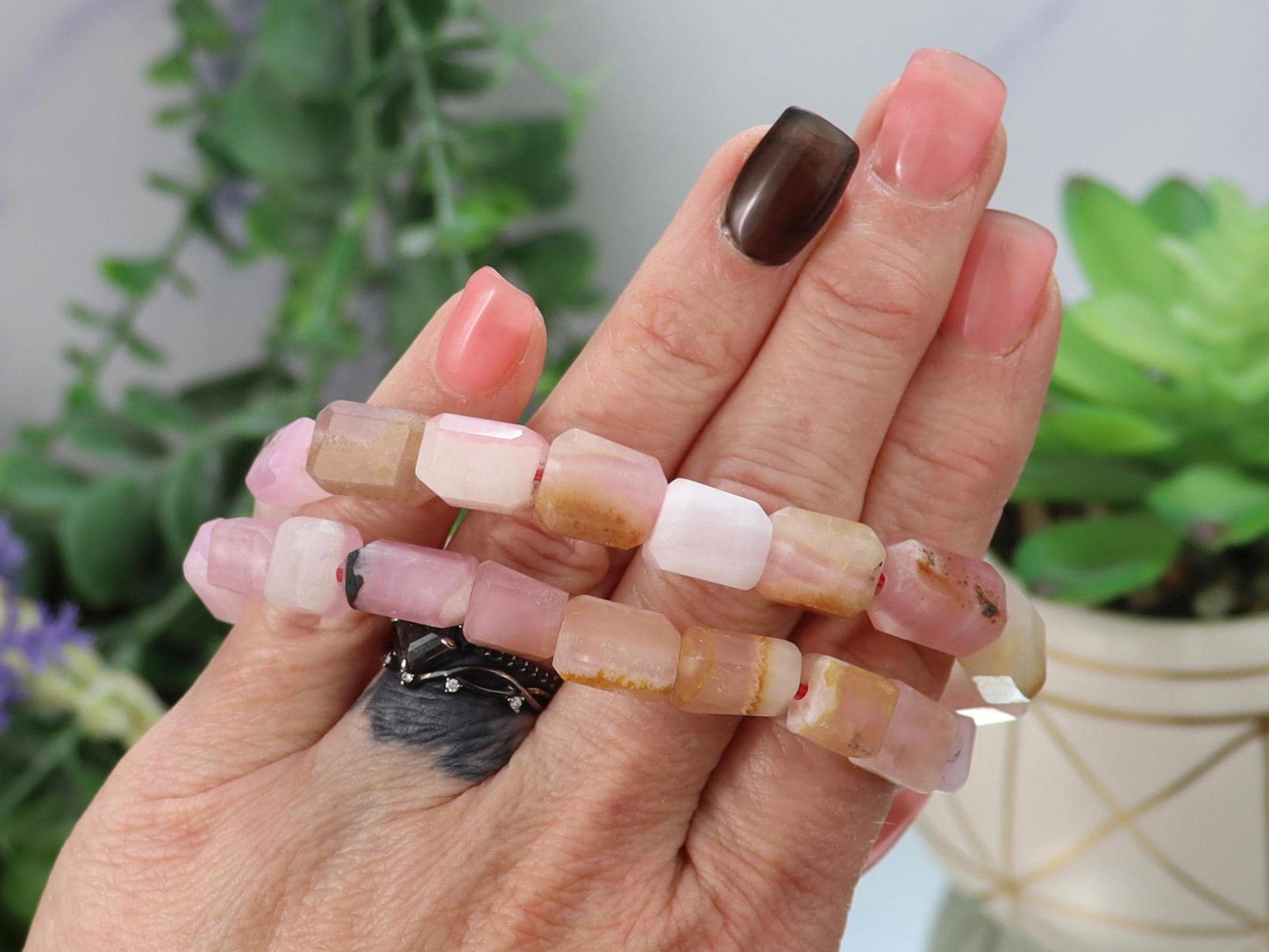 Pink Aragonite Crystal Beaded Bracelet - Natural Stone Jewelry