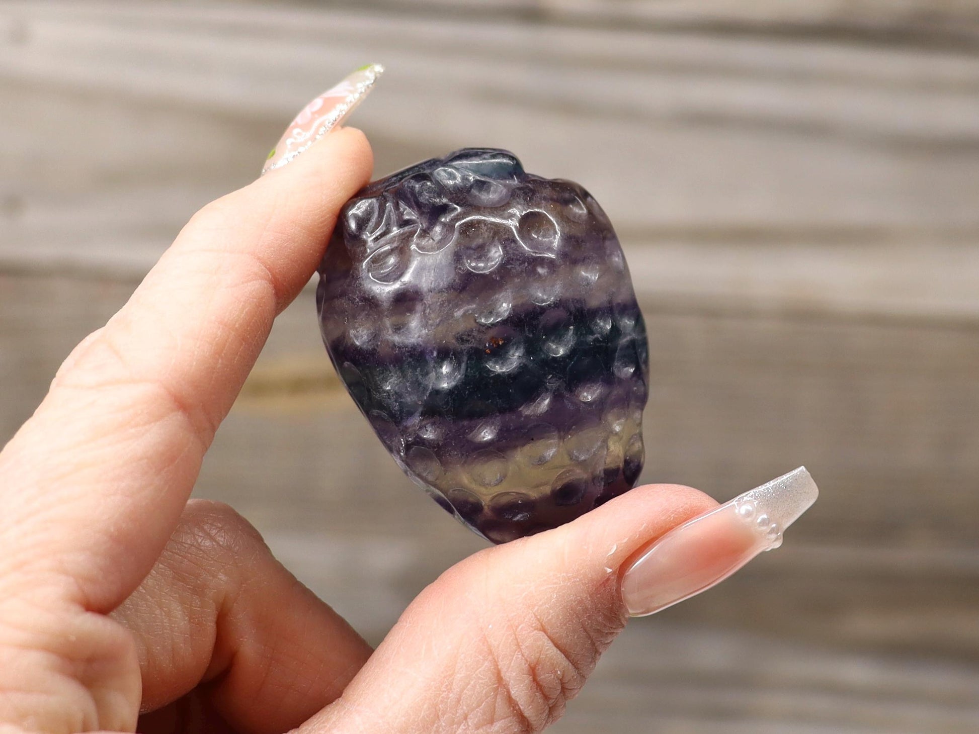 Purple Striped Fluorite Crystal Strawberry CarvingWeight - 74.7 g / 2.63 oz.